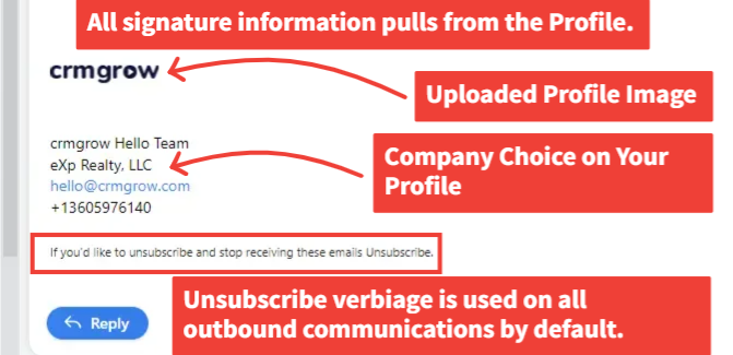 *Note: You will not see the signature in the email history within the Contact Record or Pipeline Deal Card.*
